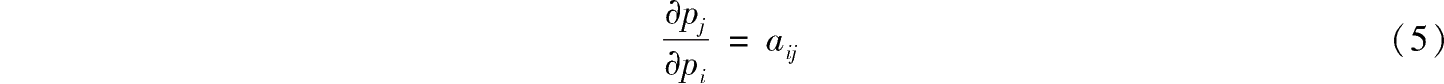 當不考慮經(jīng)濟中的反饋作用時(或假設(shè)其他所有部門的產(chǎn)品價格不變),賬戶i的價格變動對賬戶j的影響(不通過其他賬戶傳導,或通過路徑〈i,j〉)為: