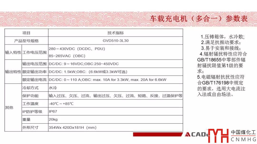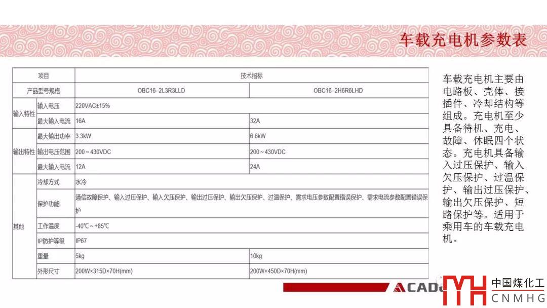 車載充電機(jī)主要由電路板、殼體、接插件、冷卻結(jié)構(gòu)等組成。充電機(jī)至少具備待機(jī)、充電、故障、休眠四個狀態(tài)。充電機(jī)具備輸入過壓保護(hù)、輸入欠壓保護(hù)、過溫保護(hù)、輸出過壓保護(hù)、輸出欠壓保護(hù)、短路保護(hù)等。適用于乘用車的車載充電機(jī)。