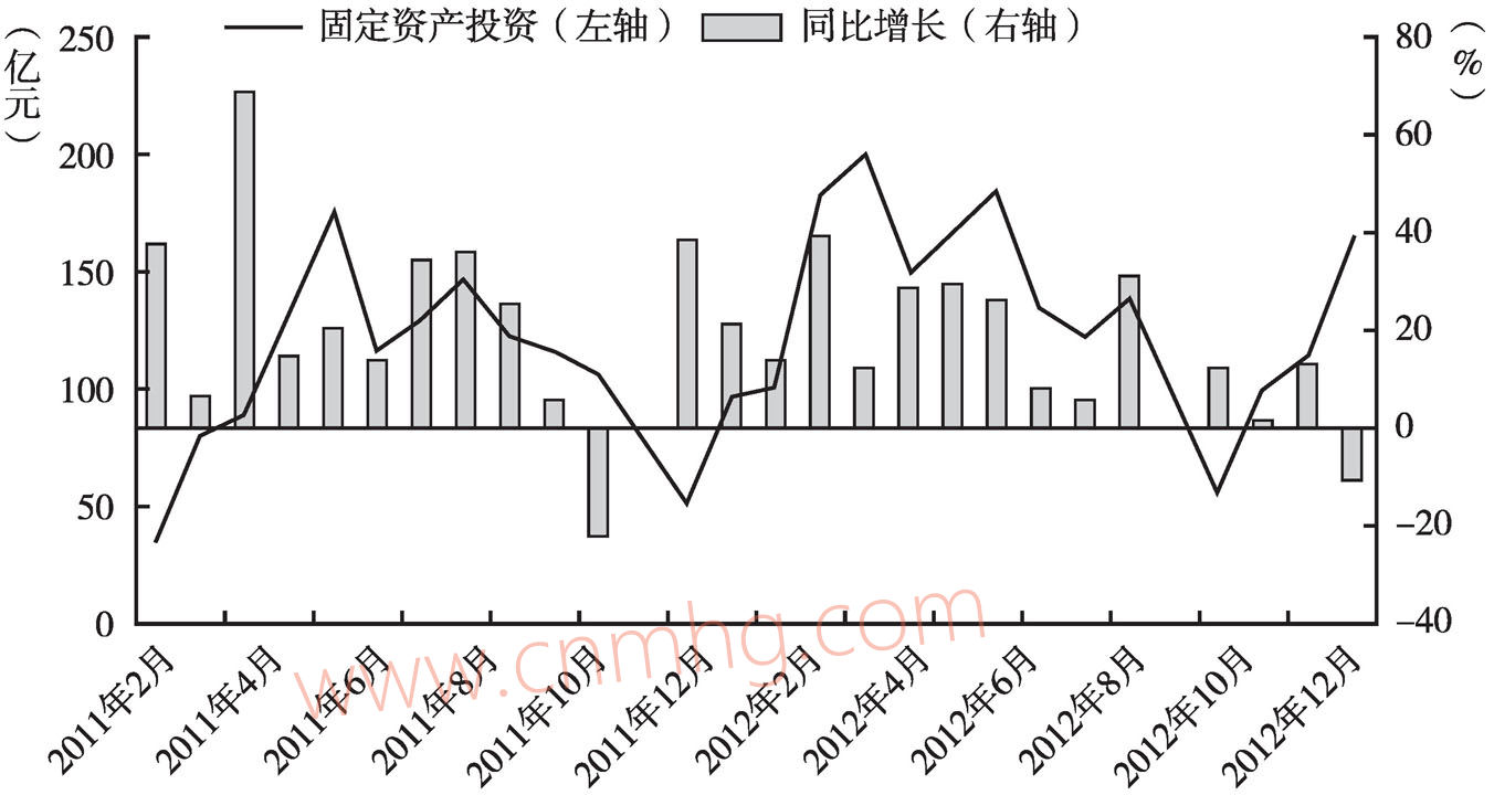 圖10 2011年2月至2013年4月鋼鐵行業(yè)固定資產(chǎn)投資月度變化情況