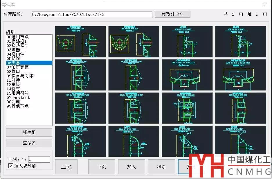VCAD從上千套施工圖中整理了 460多個能夠重復(fù)利用或者參考的圖放置在圖庫1. 450多個節(jié)點以及幻燈片放置在圖庫2中。涵蓋壓力容器中大部分節(jié)點和標準圖。