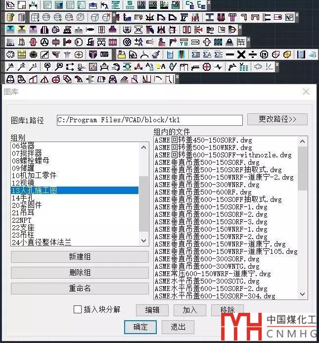 圖庫1和圖庫2都是可以手動添加的,按照VCAD的說明附錄1,可以自己制作適合公司的圖庫。