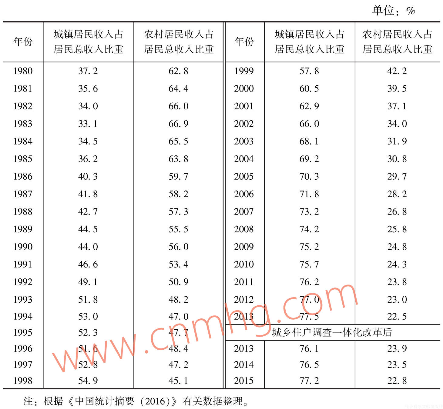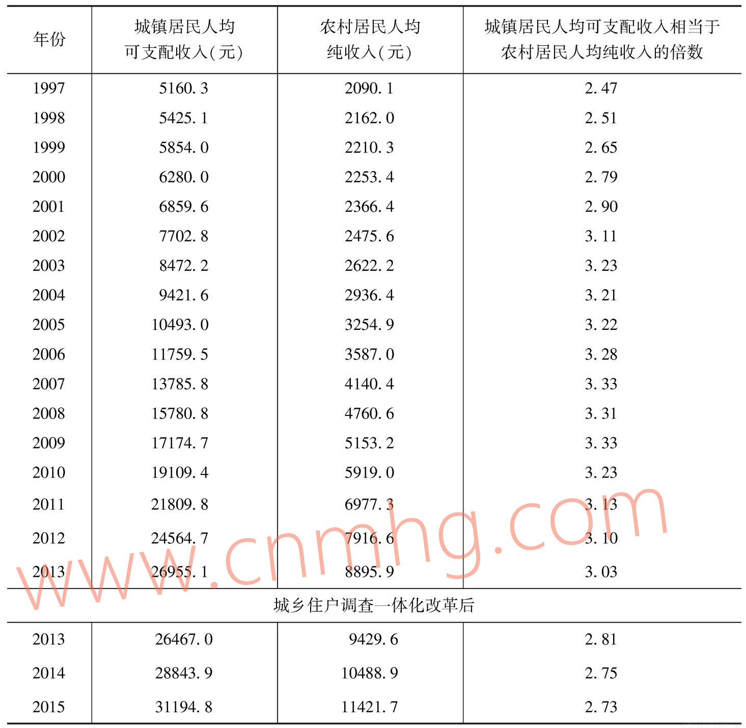 (一)居民收入的城鄉(xiāng)分配比例及其變化