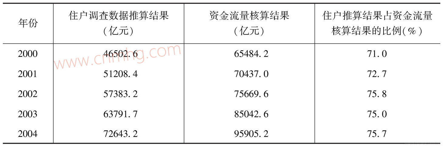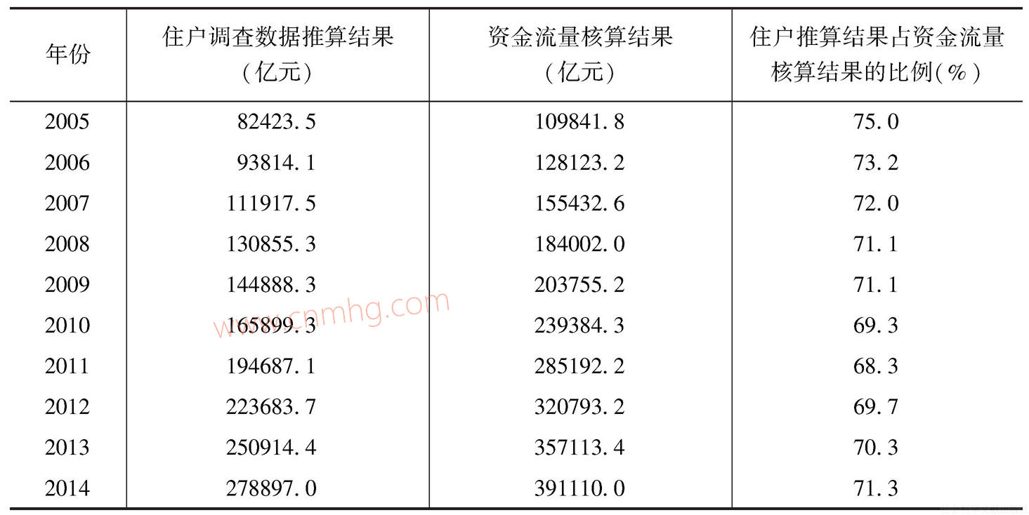表1-1 住戶調(diào)查資料推算結(jié)果與資金流量核算結(jié)果的比較