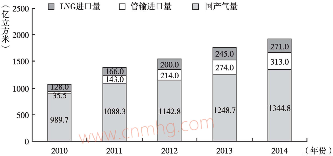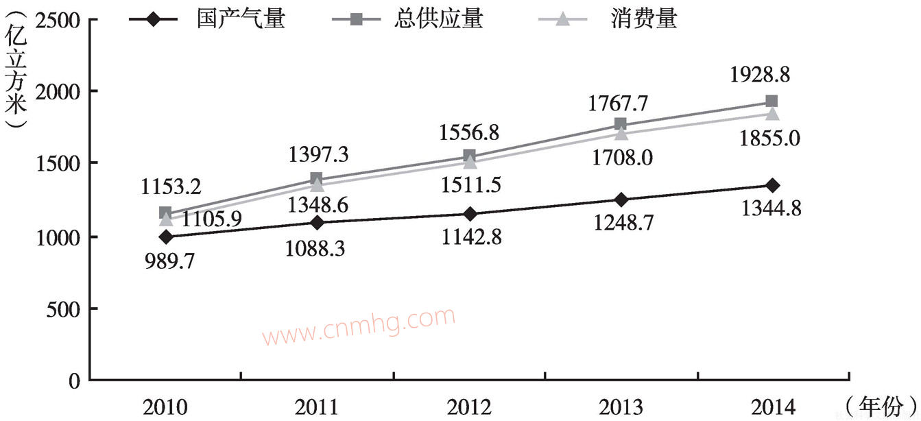 圖7 2010~2014年中國天然氣供應(yīng)概況