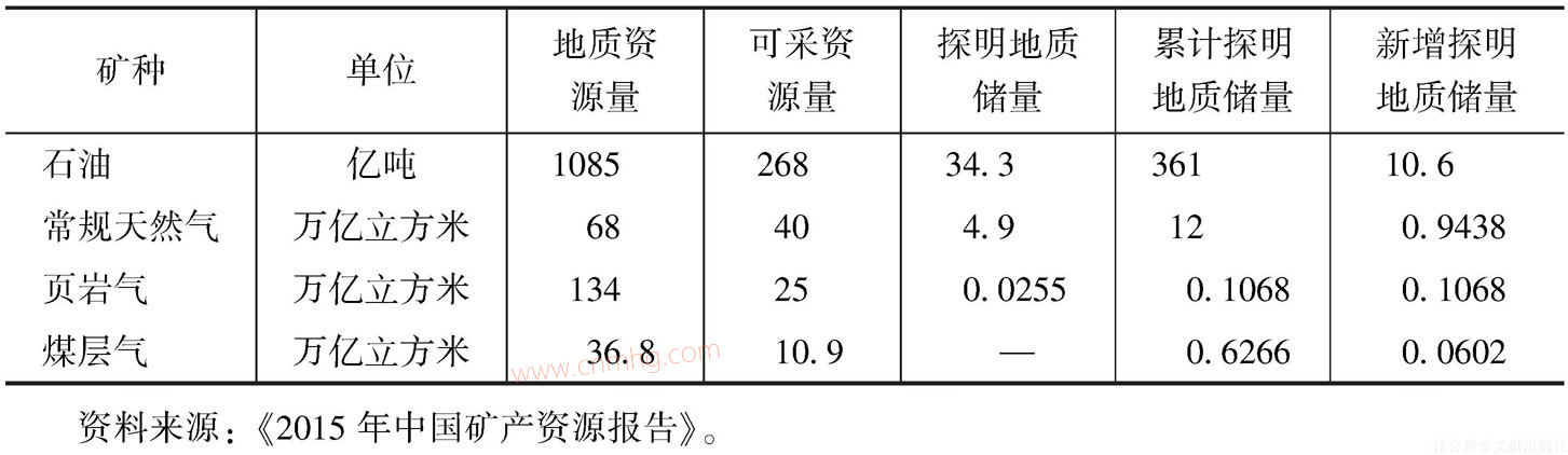 據(jù)《2015年中國礦產(chǎn)資源報(bào)告》,截至2014年底,天然氣新增探明地質(zhì)儲(chǔ)量9438億立方米,連續(xù)第12年超過5000億立方米,新增探明地質(zhì)儲(chǔ)量超過千億立方米的氣田5個(gè),分別為中國石油長慶神木氣田、中國石油塔里木克拉蘇氣田、陜西延長延安氣田、中國海油湛江陵水17-2氣田和中國海油寧波22-1氣田。全國煤層氣累計(jì)鉆井超過1.3萬口(其中2014年新增超過1000口,進(jìn)尺122.2萬米)。2014年全國新增探明地質(zhì)儲(chǔ)量602億立方米,累計(jì)探明地質(zhì)儲(chǔ)量6266億立方米。頁巖氣累計(jì)勘查投入超過230億元,鉆井780口,形成生產(chǎn)能力13億立方米。2014年全國頁巖氣新增探明地質(zhì)儲(chǔ)量1068億立方米,為2011年設(shè)定新礦種后首次提交探明地質(zhì)儲(chǔ)量。新探明氣田為中國石化勘探涪陵頁巖氣田(見表1)。