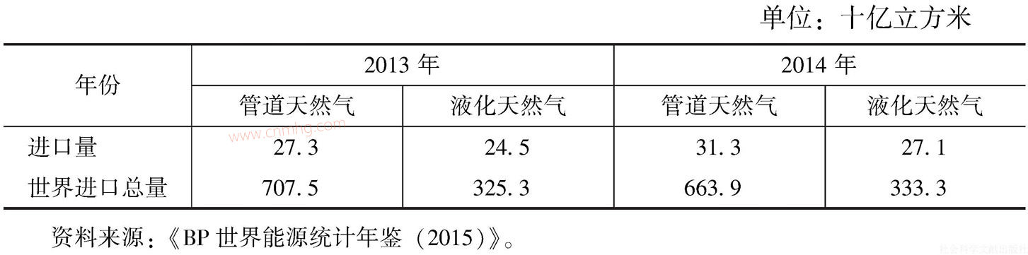 表3 2013~2014年中國天然氣貿(mào)易——進(jìn)口
