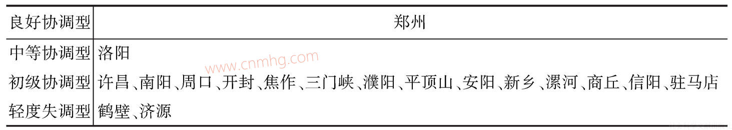 表4 河南各地能源消費(fèi)與經(jīng)濟(jì)發(fā)展協(xié)調(diào)情況