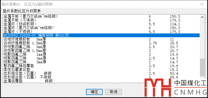9. 墊片系數(shù)m,比壓力y值對(duì)照表。將HG20592~26035-97的編制說(shuō)明中的my值也列在其中。