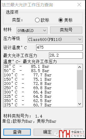 11. 管法蘭的最大允許工作壓力查詢,可自動(dòng)插值。