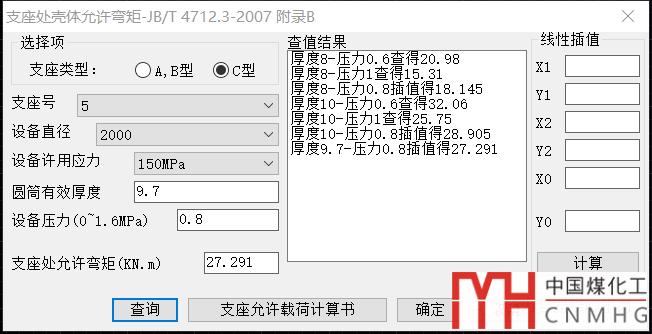 13. 支座處殼體允許彎矩查詢,經(jīng)過(guò)三次插值得到允許彎矩。非常方便。