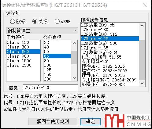 10.螺栓,螺柱,螺母數(shù)據(jù)查詢。根據(jù)HG/T 20613和HG/T20634的數(shù)據(jù)來(lái)查詢管法蘭的螺栓螺母數(shù)量,重量,標(biāo)準(zhǔn)號(hào)等信息。