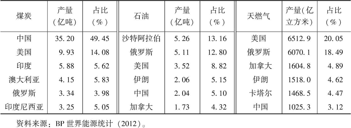 表4 主要能源生產(chǎn)國2011年能源產(chǎn)量