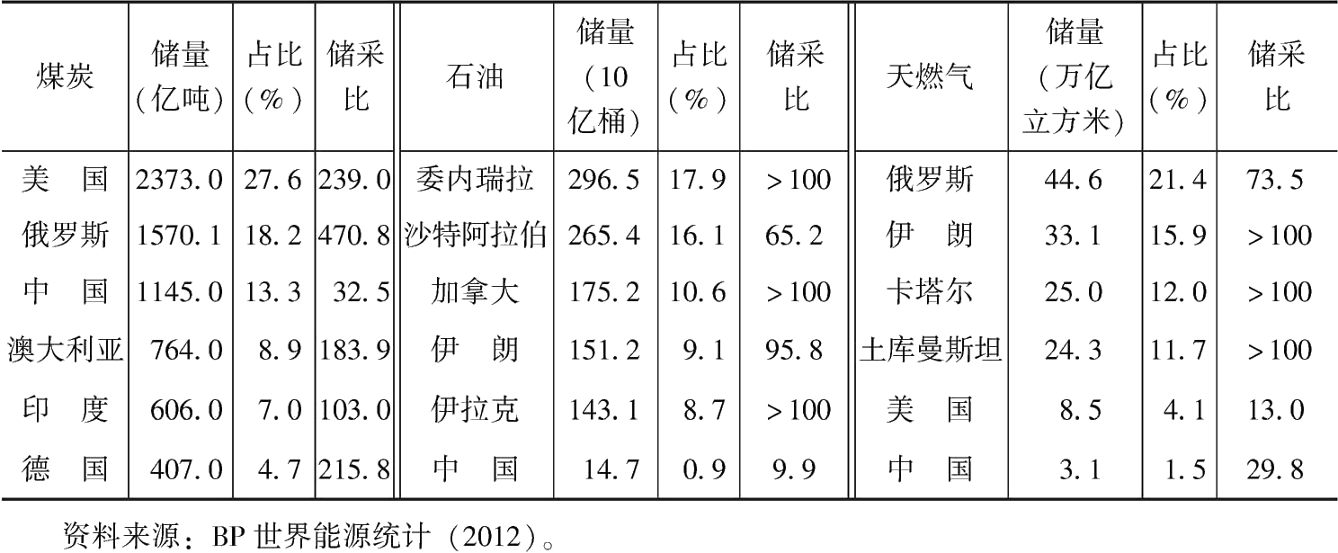 表6 2011年能源探明儲量