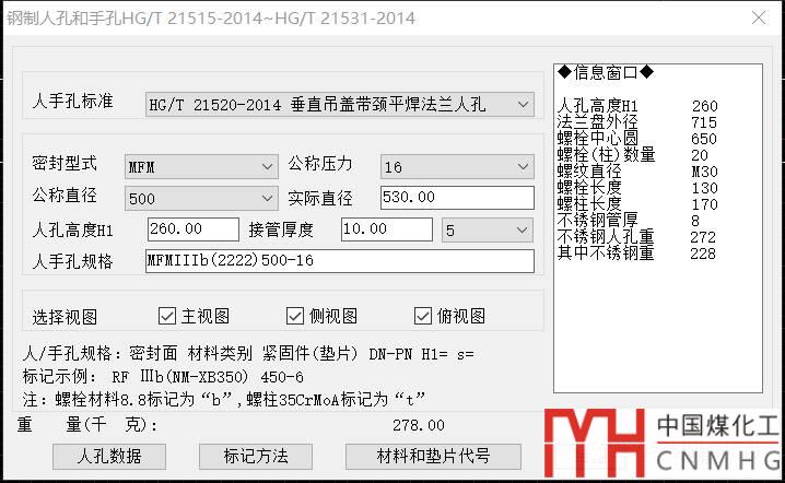 增加人孔規(guī)格的提示數(shù)據(jù)。包括人孔的數(shù)據(jù),標(biāo)記方法,材料和墊片代號。
