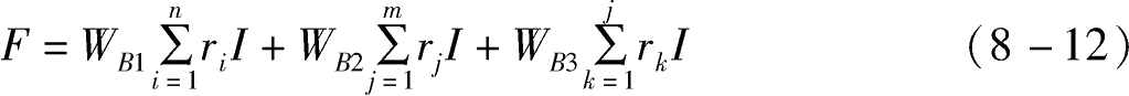 其中,WB1、WB2、WB3分別為壓力、狀態(tài)和響應(yīng)三個(gè)系統(tǒng)一級(jí)指標(biāo)的權(quán)重,ri、rj、rk分別為系統(tǒng)內(nèi)二級(jí)指標(biāo)的權(quán)重,I為經(jīng)過無量綱化處理后的各指標(biāo)數(shù)值。根據(jù)公式(8-12),最后計(jì)算結(jié)果如表8-6所示。