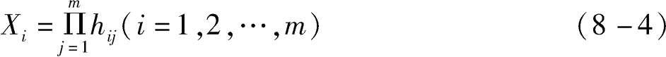 將模糊一致性矩陣H=(hij)m×m的每一行進(jìn)行乘積運(yùn)算,得到: