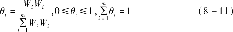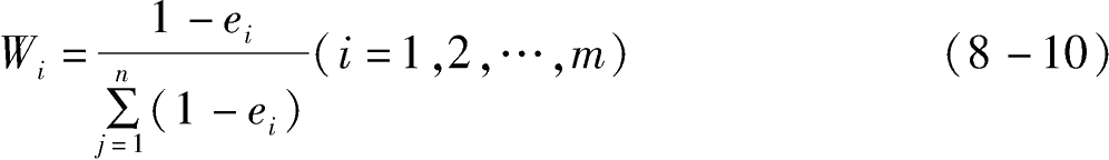 由此可以得到各項(xiàng)指標(biāo)的權(quán)重值,如表8-5所示。