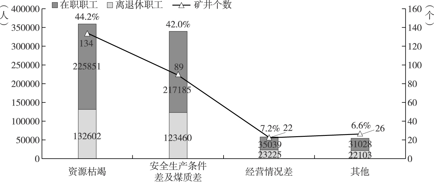 圖8-9 受影響職工按煤礦退出原因歸類(lèi)分布
