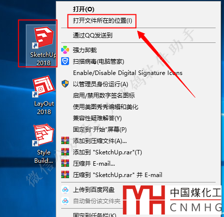 鼠標右擊【SketchUp 2018】軟件圖標選擇【打開文件所在的位置】