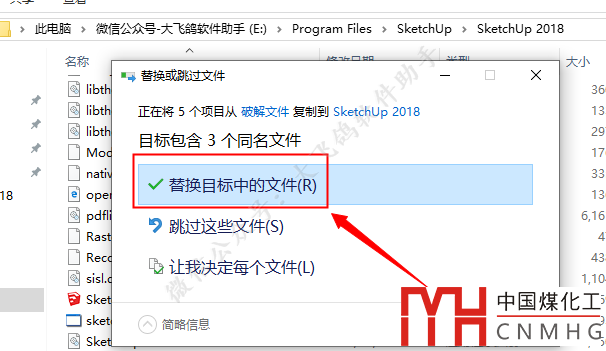 點擊【替換目標中的文件】。