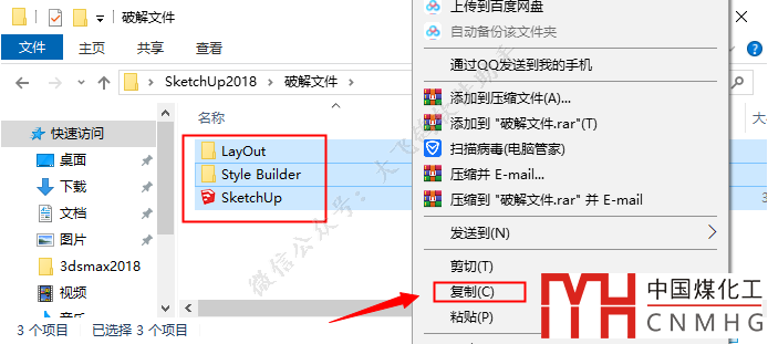 全選【破解文件】文件夾中的所有內容,然后鼠標右擊選擇【復制】。