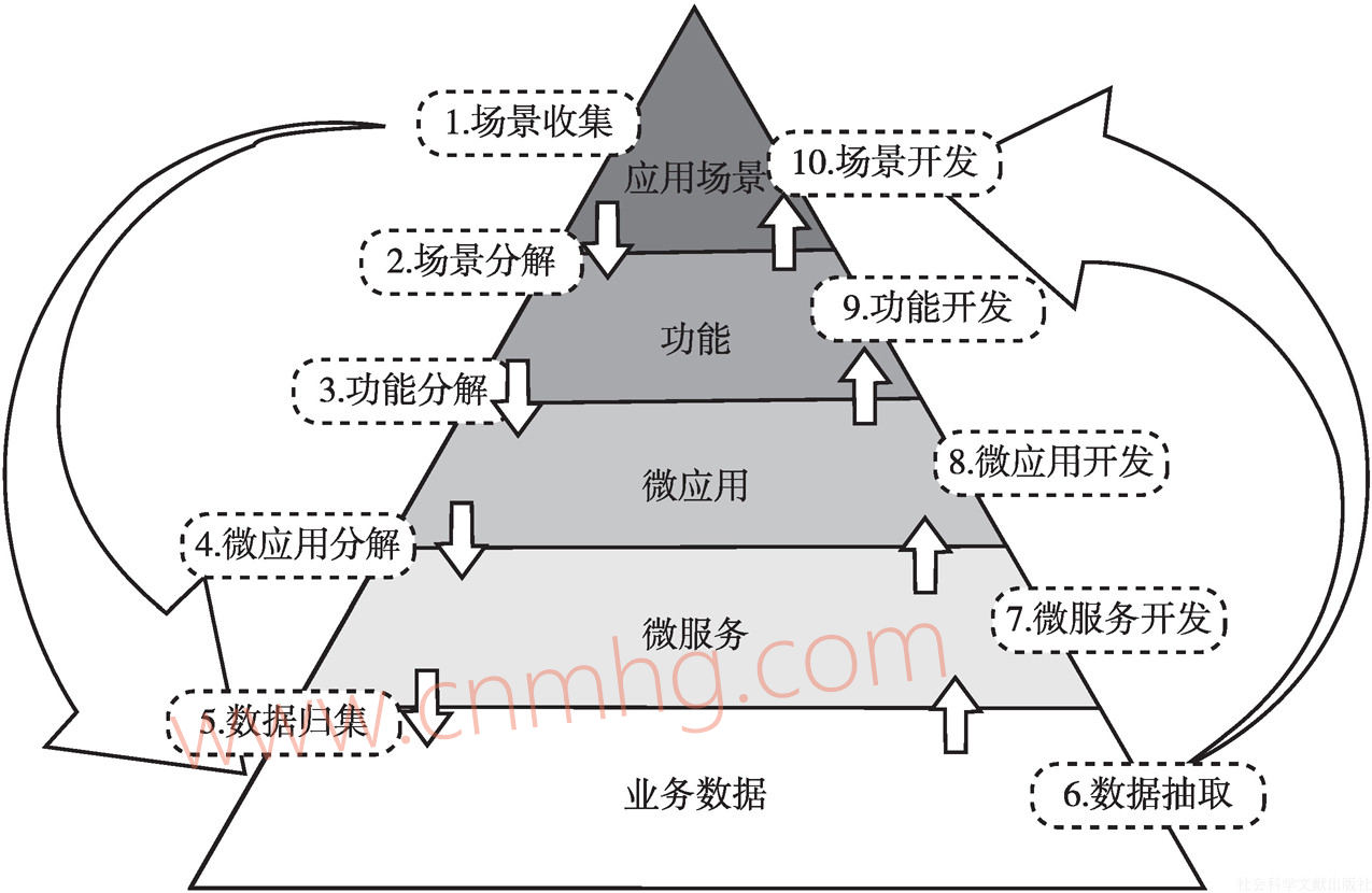 自上而下,實現(xiàn)應(yīng)用場景功能的逐級分解。場景收集:堅持目標(biāo)導(dǎo)向和問題導(dǎo)向,收集梳理形成業(yè)務(wù)場景;場景分解:將應(yīng)用場景分解形成詳細(xì)功能需求清單;功能分解:將功能需求進(jìn)一步分解形成微應(yīng)用清單;微應(yīng)用分解:將微應(yīng)用需求進(jìn)一步分解形成微服務(wù)清單;數(shù)據(jù)歸集:根據(jù)微服務(wù)需求,收集需求數(shù)據(jù)、數(shù)據(jù)來源、傳輸頻率,規(guī)范數(shù)據(jù)使用標(biāo)準(zhǔn),實現(xiàn)數(shù)據(jù)源導(dǎo)入。
