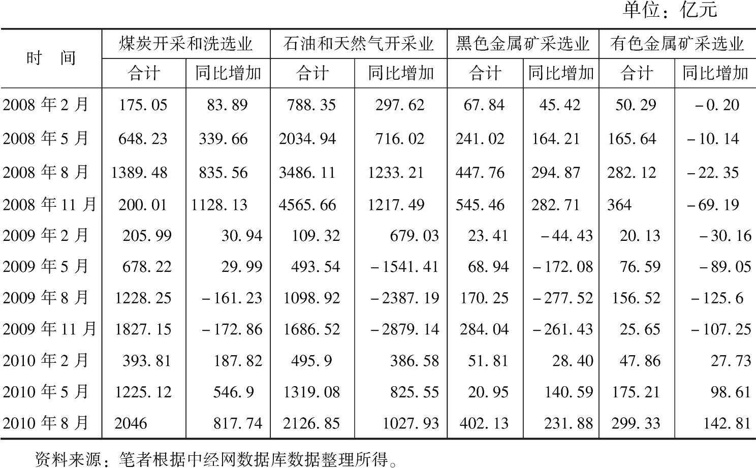 表4-7 2008年以來我國采掘業(yè)各子行業(yè)利潤總額及其累計增速