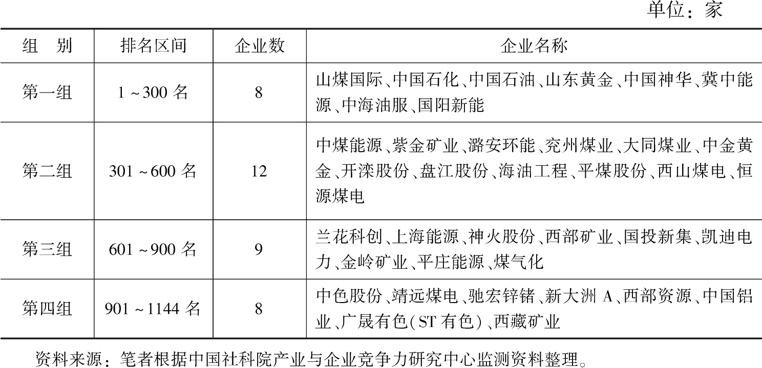 二 采掘業(yè)上市企業(yè)競爭力分析