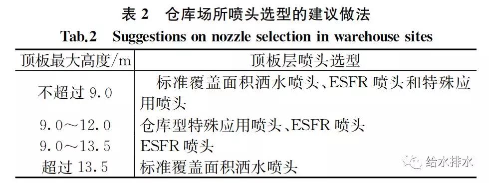 基于上述分析,“規(guī)范”對(duì)于倉(cāng)儲(chǔ)建筑頂板層噴頭的選型建議如表2所示。