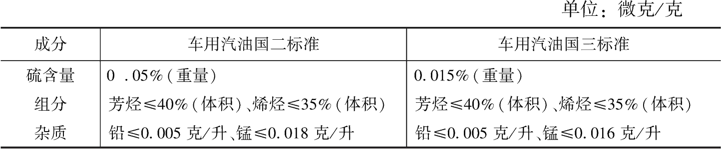 表1 車用汽油國二與國三主要指標(biāo)差異對比情況