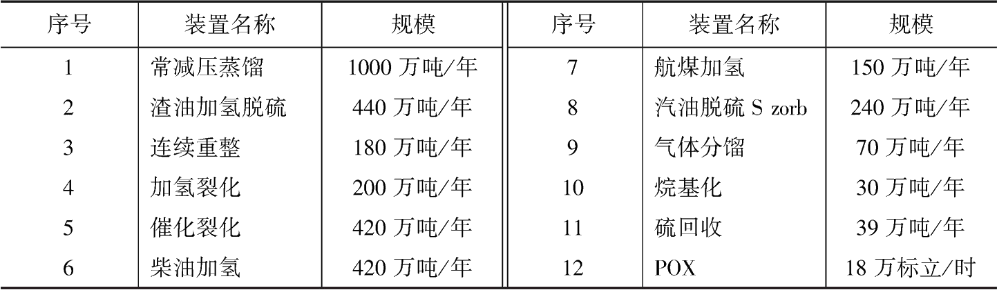 表4 國內(nèi)某煉油項(xiàng)目主要裝置結(jié)構(gòu)一覽