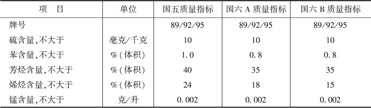 表2 國六與國五車用汽油主要指標(biāo)比較情況