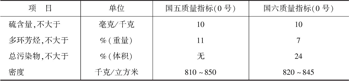 表3 國六與國五車用柴油主要指標(biāo)比較