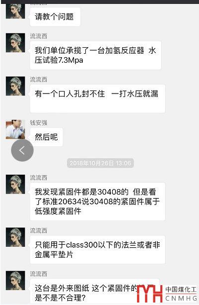 一臺(tái)加氫反應(yīng)器,材料為15CrMoR+S32168的復(fù)合板,水壓試驗(yàn)7.3MPa,采用的緊固件是30408的材料,人孔密封不住,一打水壓就漏。