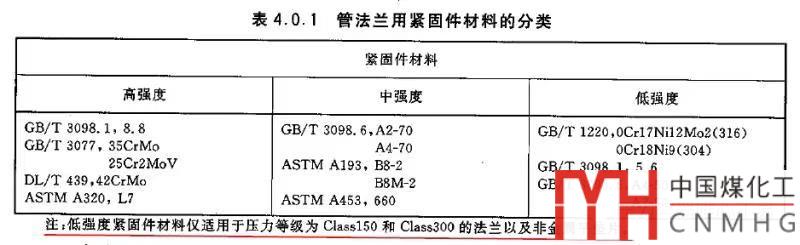 其中,管法蘭用緊固件材料分類有一注: