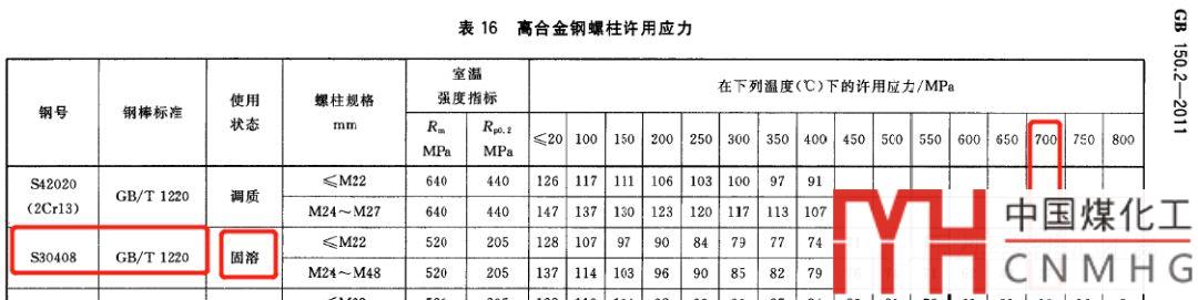 原來設(shè)計(jì)過幾臺(tái)設(shè)計(jì)溫度580°C的換熱器,是全不銹鋼的,螺柱也采用的不銹鋼,就是因?yàn)樘间撘呀?jīng)取不到許用應(yīng)力了。