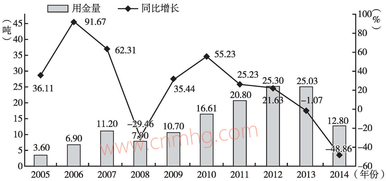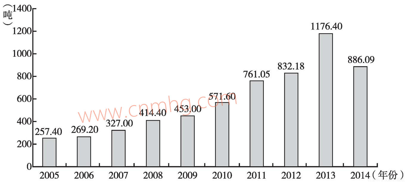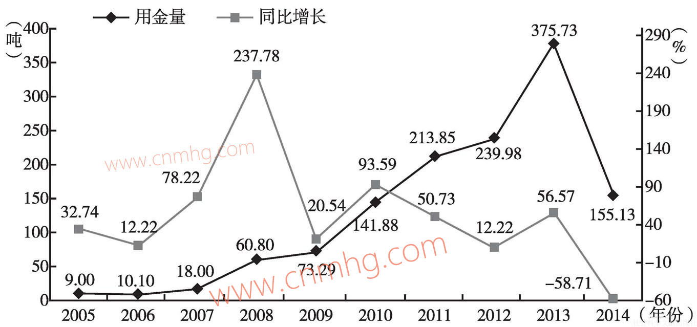 圖8 2005~2014年我國(guó)黃金加工規(guī)模變化
