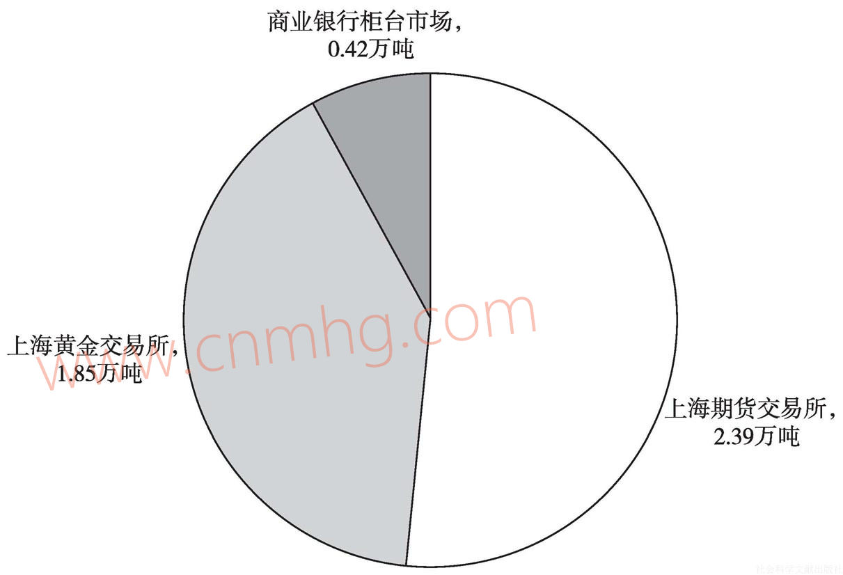 我國(guó)黃金市場(chǎng)由上海黃金交易所、上海期貨交易所及商業(yè)銀行柜臺(tái)市場(chǎng)組成,這是一個(gè)逐步形成的黃金市場(chǎng)體系。2014年總交易量達(dá)到4.66萬(wàn)噸,已是僅次于倫敦和紐約的第三大黃金市場(chǎng)。