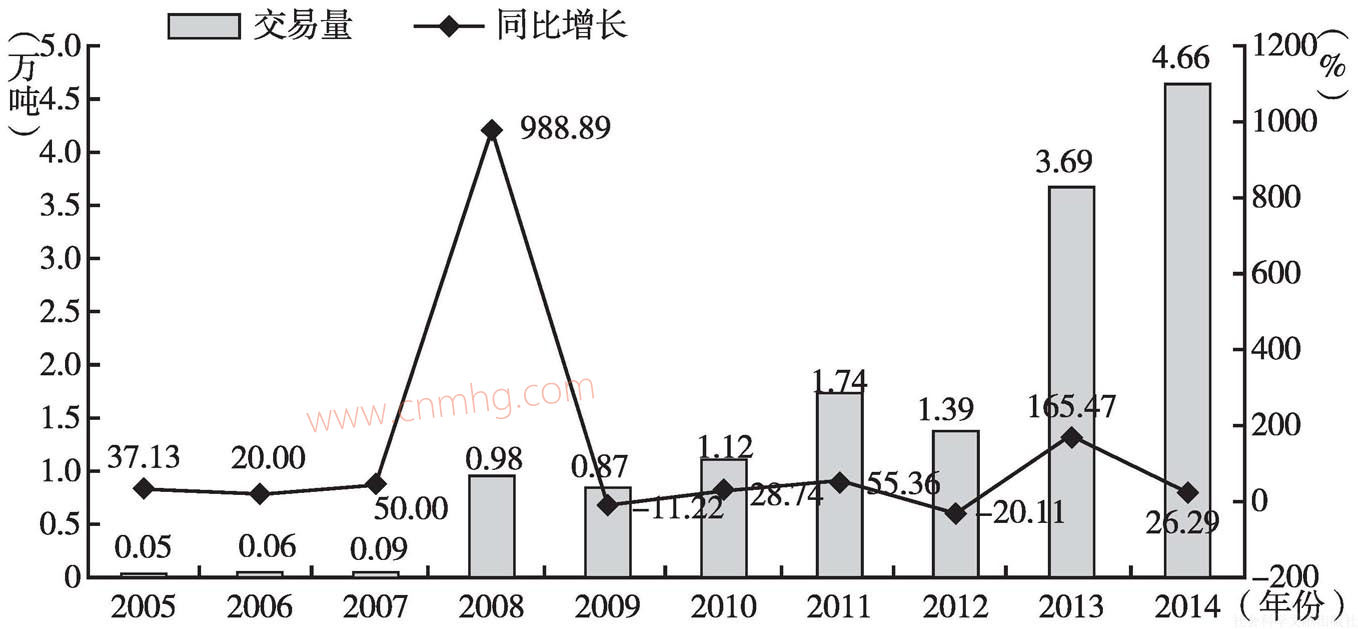 圖10 2005~2014年黃金市場(chǎng)交易量變化