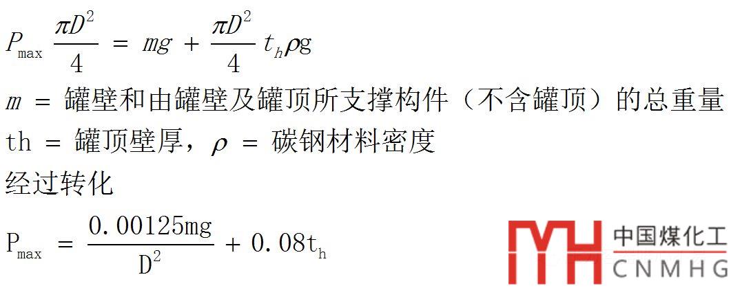 與GB50341相比,API650Pmax要小。但是由于不再假設(shè)材料密度,所以對于其他材料(比如鋁)頂也適用。