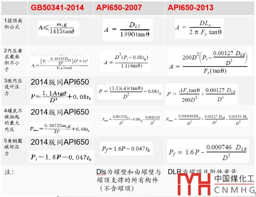 GB50341和API650-2007,2013公式原理一致,表達略有不同,API650-2013的公式更為通用。