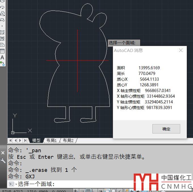 點擊工具-->查詢-->面域,點擊小豬佩奇面域線,回車: