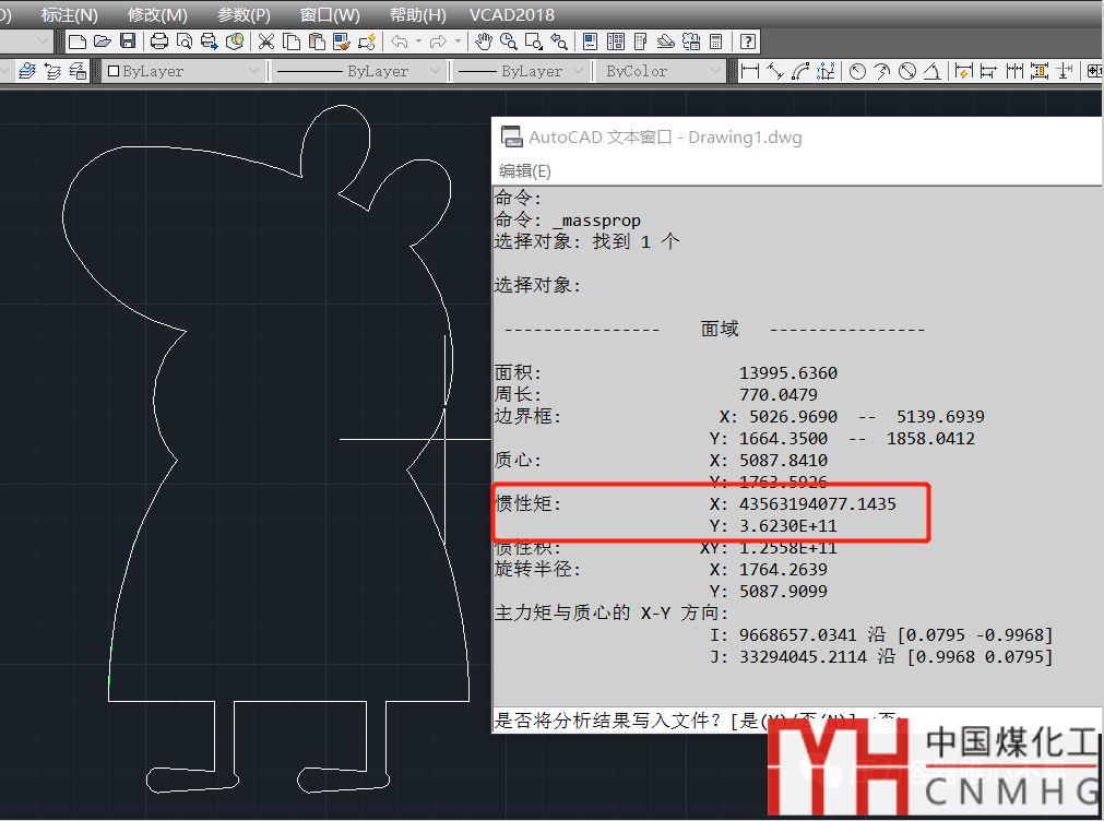 VCAD針對最后一種終極方法,做了個簡化,輸入gxj,點擊面域,即可直接得到圖形的慣性矩,不需要移動圖形到坐標系原點。