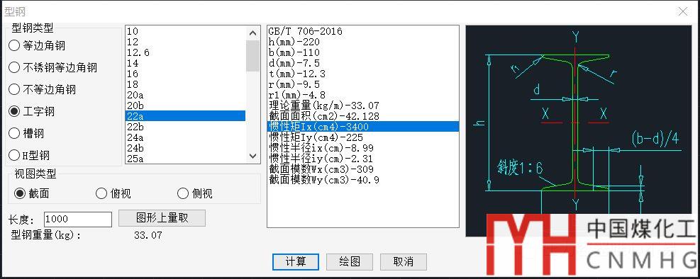 如果是有VCAD可以直接查詢型鋼的數據。