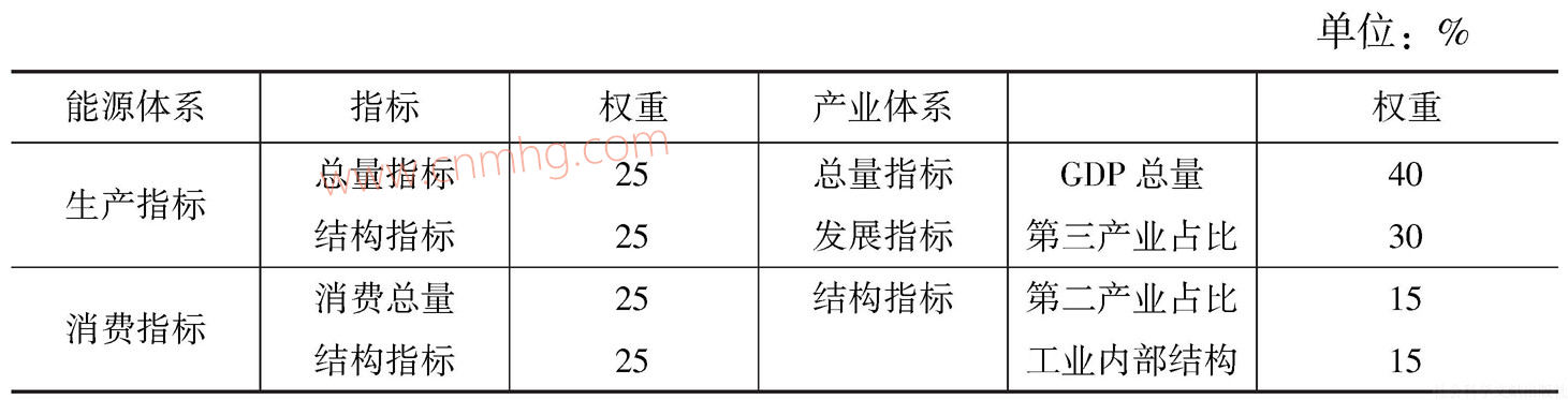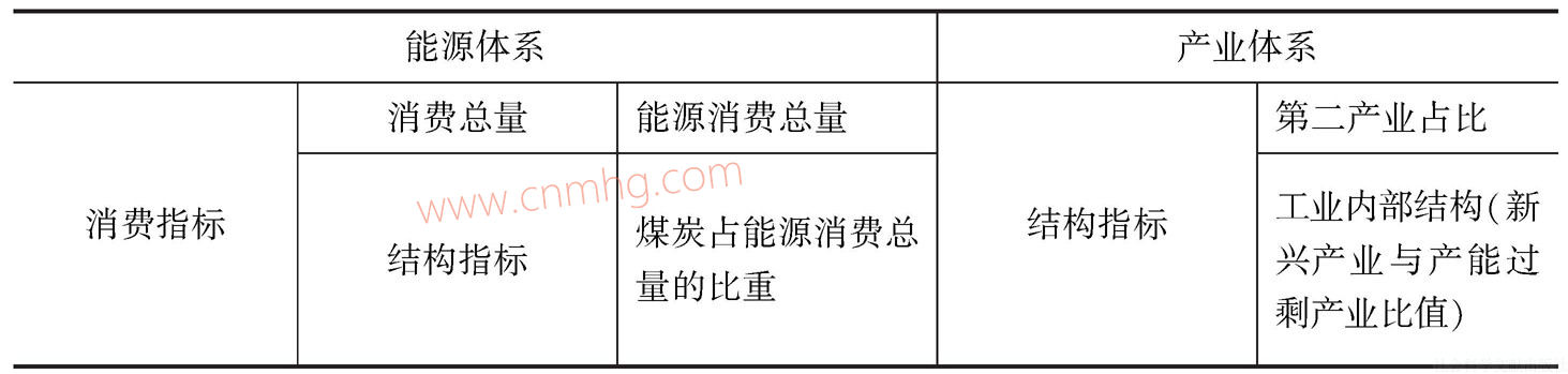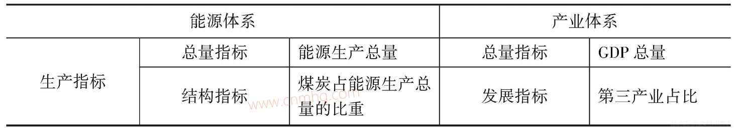 表1 能源體系和產(chǎn)業(yè)體系指標(biāo)