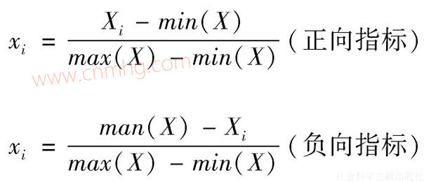 首先,為保證數(shù)據(jù)的可比性,剔除不同指標(biāo)數(shù)據(jù)間的量綱影響,筆者對(duì)數(shù)據(jù)指標(biāo)進(jìn)行標(biāo)準(zhǔn)化處理,具體變換公式為: