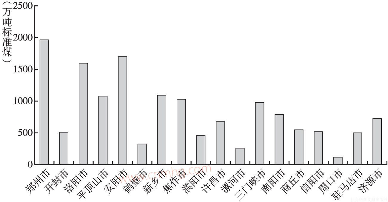 圖4 2015年河南省各地市規(guī)模以上工業(yè)企業(yè)能源消費(fèi)量