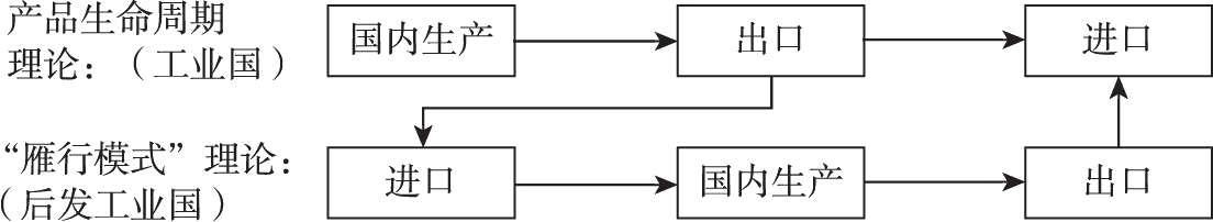 圖2-1 產(chǎn)品生命周期理論與“雁行模式”理論的結(jié)合