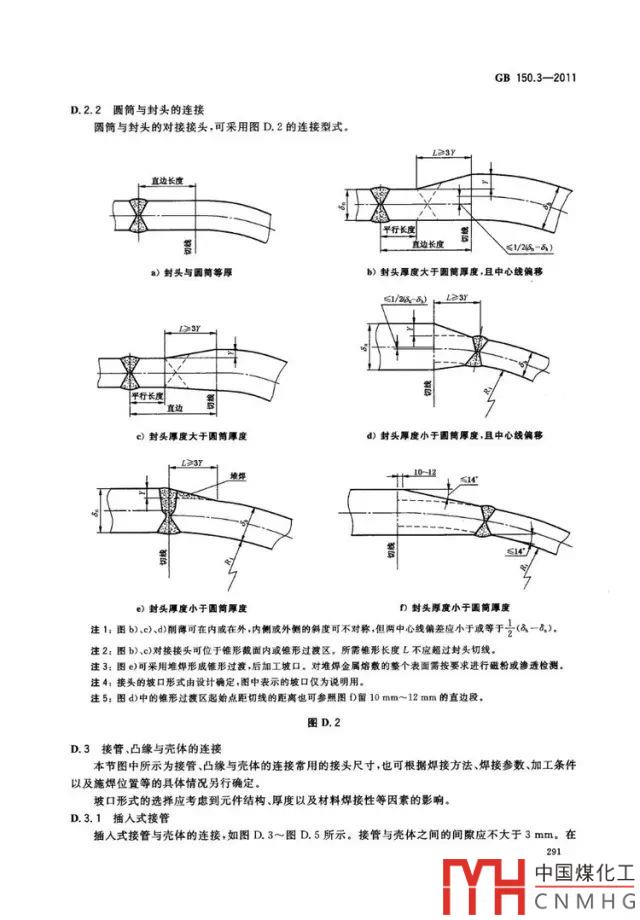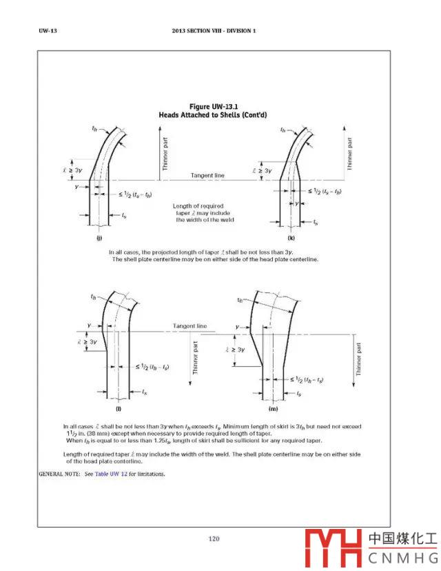 在GB150和ASME中都對封頭和筒體連接的焊接節(jié)點進行規(guī)定,詳見如下圖: