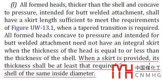 封頭直邊計算公式等于筒體的計算公式。這在ASME UG32(l)中有明確規(guī)定,的確,當(dāng)封頭最小厚度遠(yuǎn)小于筒體最小計算厚度時,計算封頭的直邊是非常有必要的,避免直邊的一次薄膜應(yīng)力過大。